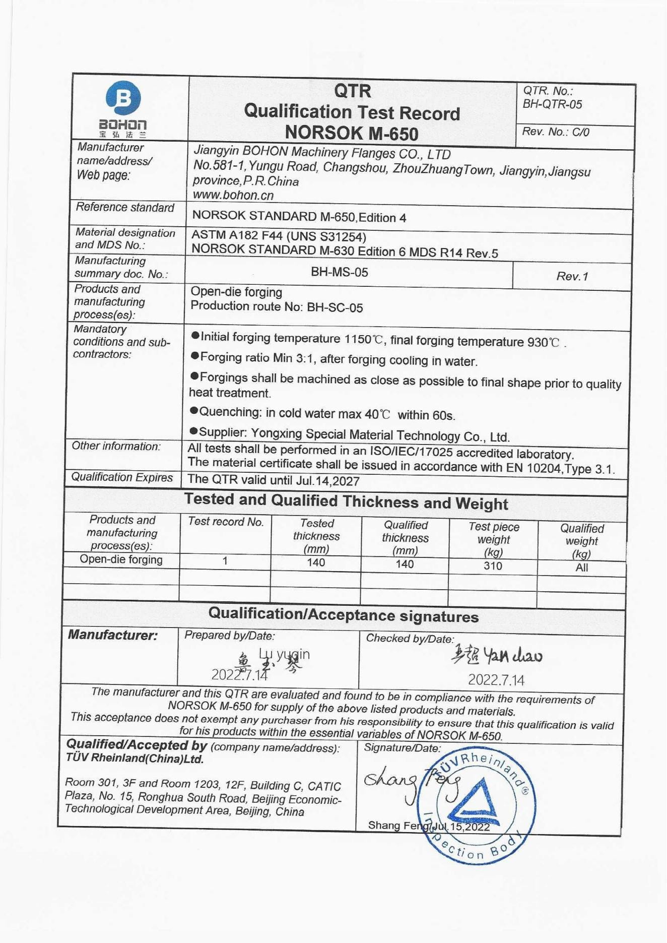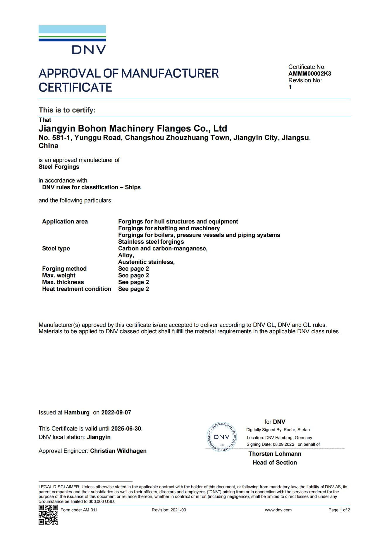 本公司是生产不锈钢法兰的专业厂家,公司通过ISO-9001:2008质量体系认证;TUV PED 97/23/EC & AD2000-W0/TRD 100、DNV、BV、ABS等系列认证以及 特种设备制造许可证的认证。